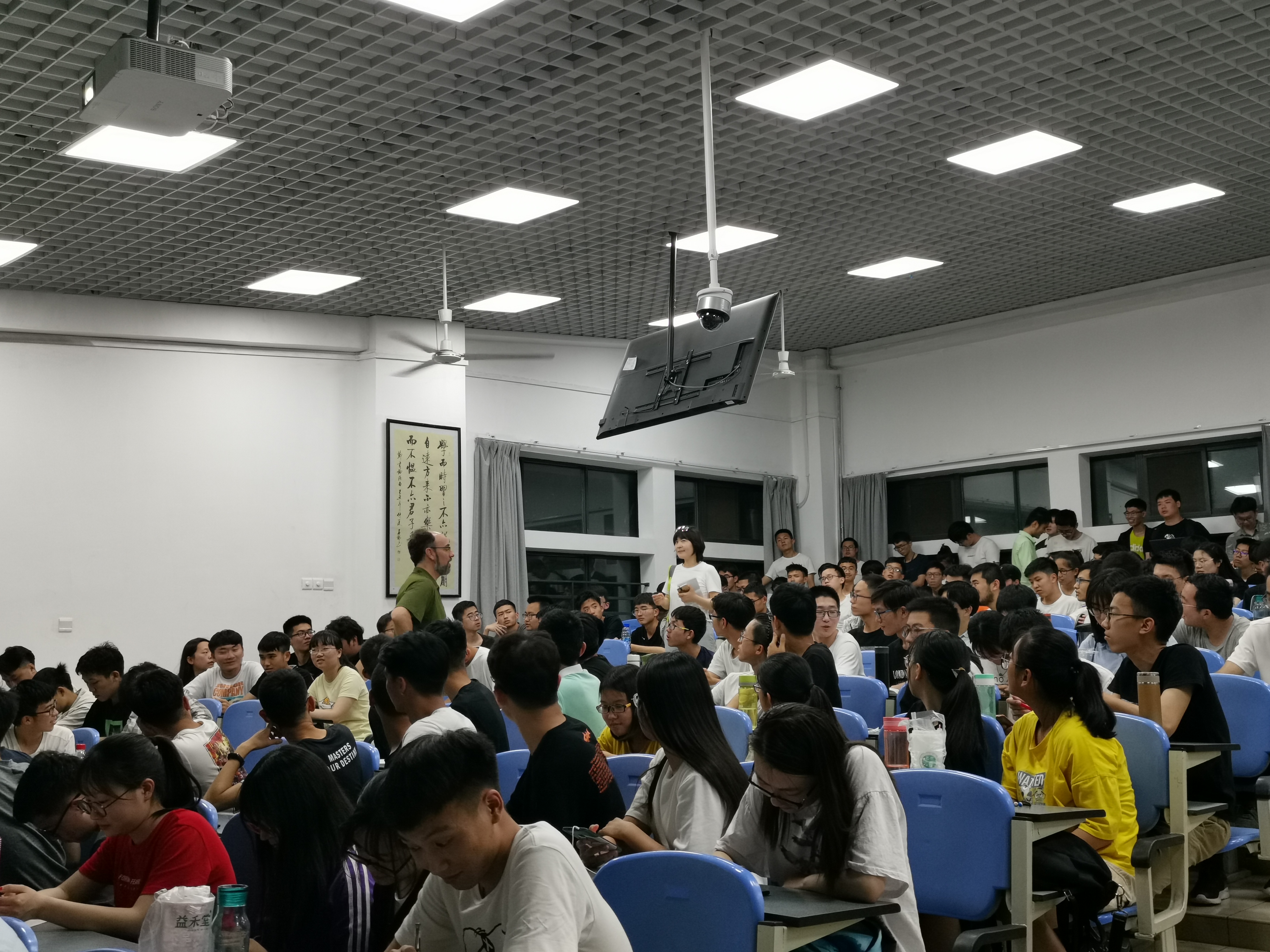 此次讲座受到了同学们的积极响应,讲座还未开始现场就已经座无虚席,热情的同学们有的席地而坐,有的站在最后,认真的聆听着Robert老师的纯正美式英语。Robert老师用他特有的美式幽默,从他自身多语种学习的经历讲起,向同学们逐渐阐明了语言学习和文化学习的紧密关系。为了让同学们有更深刻的体会,Robert老师还邀请在场同学做了场景模拟演示,为同学们展示了不同文化的问好模式等。同学们在聆听过程中,时而捧腹大笑,时而若有所思。最后,Robert老师还为大家介绍了多种学习英语的方式,并鼓励大家积极融入到语言学习的环境中,勇敢交流,真正认识语言学习的最终目的是为了交流。