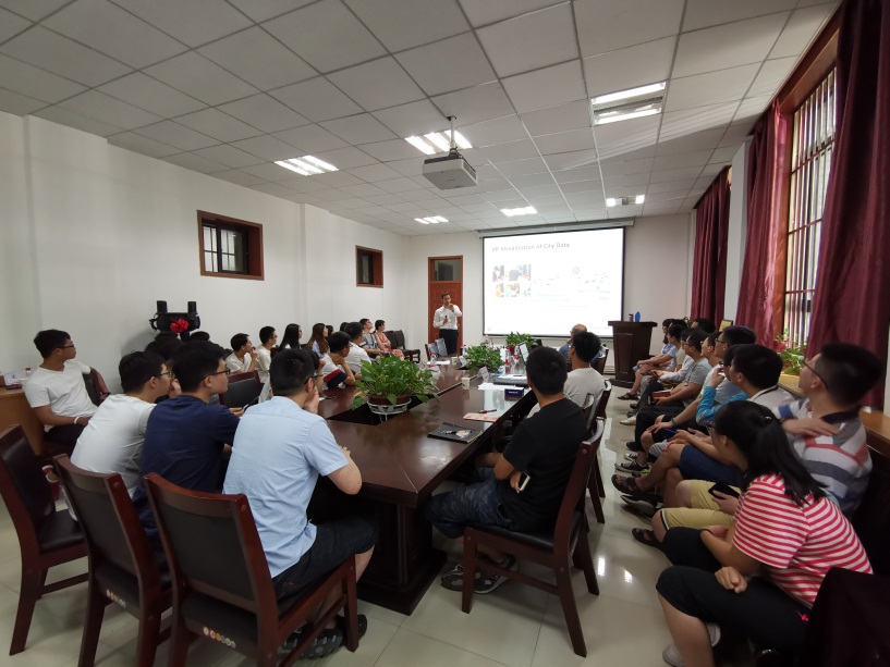 丁金闪教授首先代表学院对两位远道而来的客人表示了热烈欢迎。随后,全英汇教授从培养目标、培养模式、未来发展等方面向代表们具体介绍了我院遥感科学与技术专业。Deligiannis教授也从专业设置、科学研究,人才培养等方面详细介绍了比利时布鲁塞尔自由大学应用计算机科学专业的情况,并回答了相关问题。