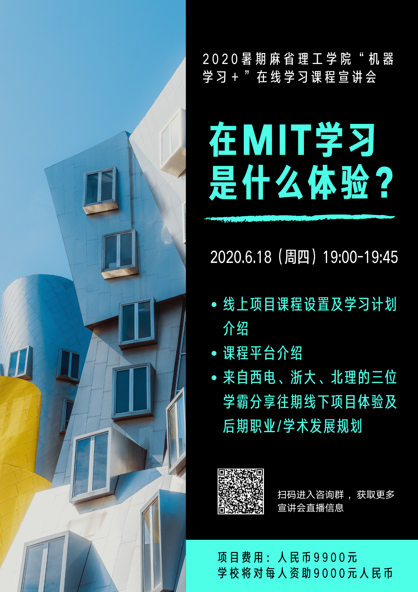 关于MIT暑期在线学习项目的在线宣讲会暂定于2020/06/18 19:00进行,请感兴趣的同学微信咨询宣讲会具体事宜。