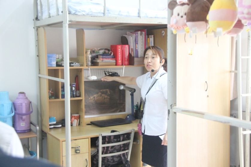 1602061班学生张昕雨:进入每个内务整理体验的宿舍,第一感觉是干净舒适。听宿管老师细心地讲解宿舍整理和宿舍安全问题,尤其是平时注意不到的细节问题,比如空调和风扇需要定期清理,公共区域尤其是卫生间,更要注意保持卫生,离开宿舍之后注意及时断电等。通过这次活动体验,我认为我们要正确认识到营造良好的生活环境的重要性,弘扬劳动精神,做德智体美劳全面发展的我校人。