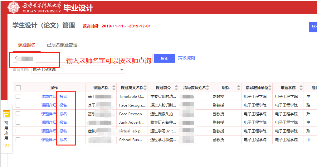 1.2020年12月3日10:00至12月7日24:00,学生登录学校2018教务系统http://ehall.xidian.edu.cn选题。