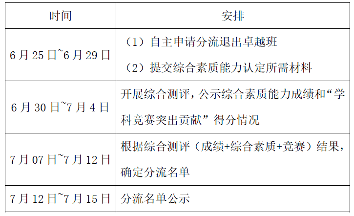 (1)自愿申请分流退出卓越班一贯制培养计划;