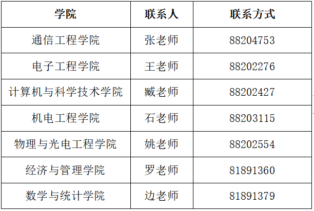 (二)如有开课、重修、上课时间、课程安排、撤回培养计划等问题请各位同学联系各学院研究生教学管理老师,联系方式如下: