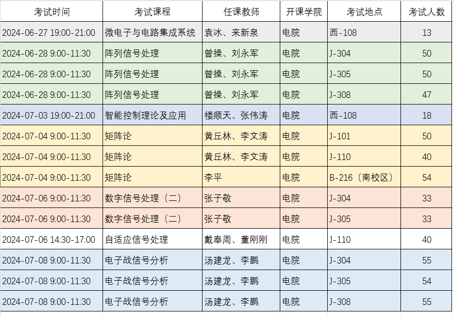 2024春我院开设课程期末考试安排见下表: