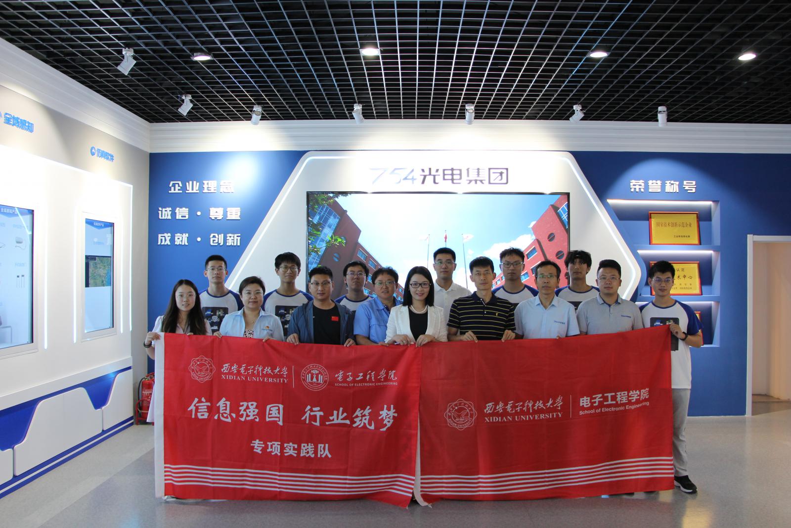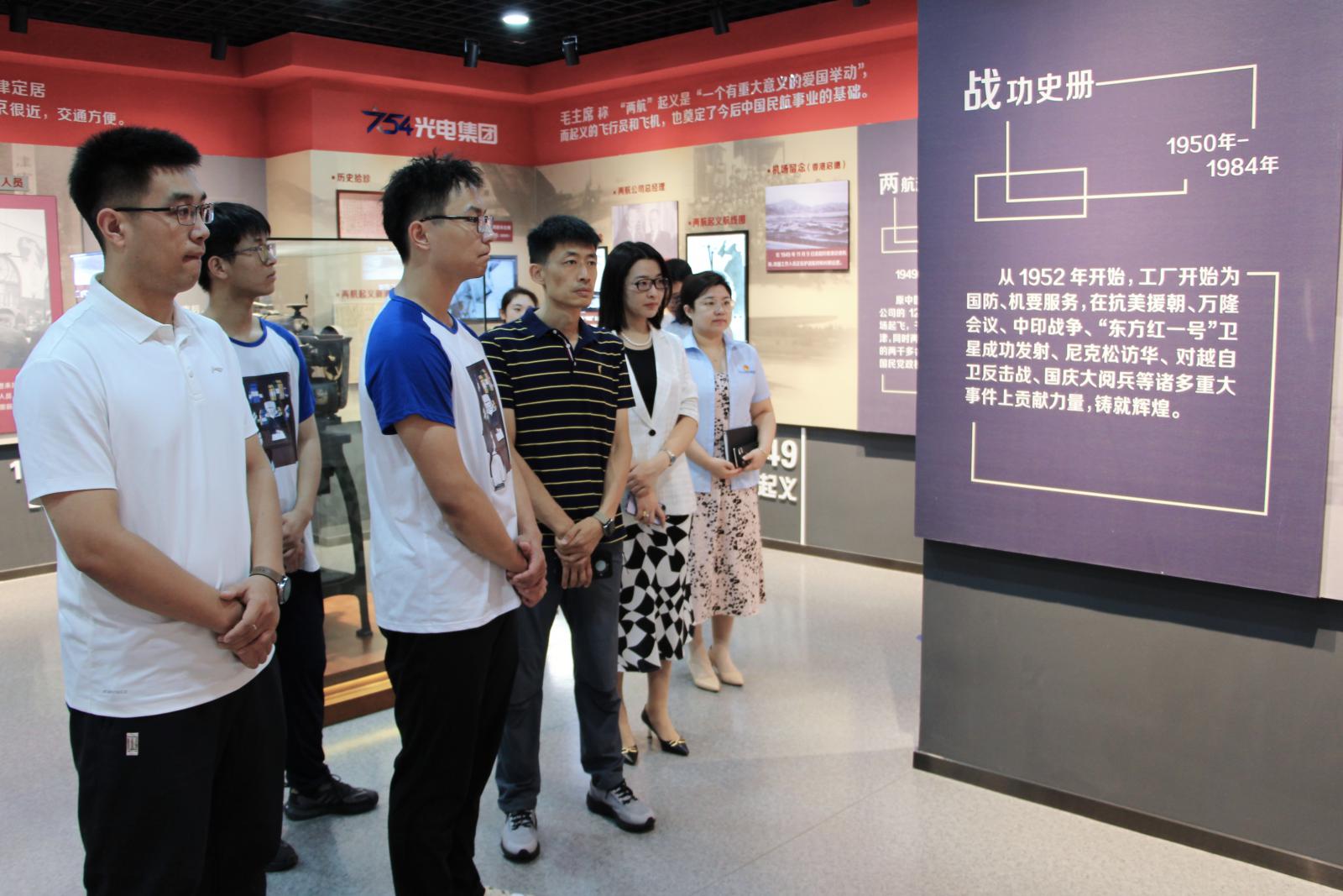 8日上午,实践队来到天津光电集团有限公司,在光电集团党委副书记李媛媛、总经理助理李超、副厂长薄连安、助理部长王姗姗的陪同下参观了历史展览馆及现代科技馆,了解光电集团的建设发展史和产业布局,深入感受光电集团建设国防的奋斗历程和精神文化。随后,双方就校企合作和人才培养开展交流座谈。李媛媛代表光电集团对实践队一行表示热烈欢迎,从历史故事、业务领域、人才需求和发展规划等做了详细介绍,希望未来双方进一步健全沟通和人员互访机制,加强交流,务实合作,并欢迎更多我校优秀学子加入,共同推动电子信息产业蓬勃发展。
