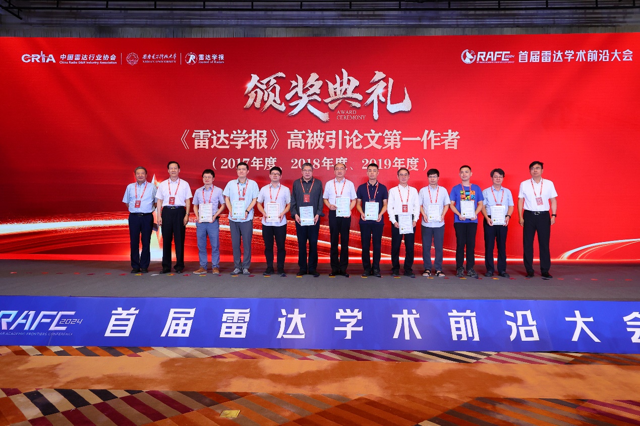 颁奖典礼中,由《雷达学报》原主编吴一戎院士、《雷达学报》主编丁赤飚院士、《雷达学报》顾问李德仁院士、金亚秋院士、段宝岩院士、尹浩院士、王建宇院士、吴剑旗院士分别为《雷达学报》优秀编委、高被引论文、优秀论文和雷达未来之星等获奖代表颁发证书。