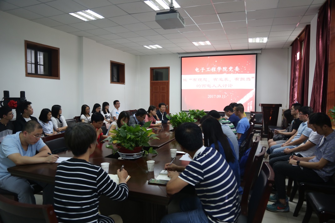 9月6日,学校印发了《关于开展“做有理想有追求有担当的我校人”大讨论的实施意见》,对在全校开展大讨论活动提出具体要求,大讨论活动正式启动。学院党委高度重视学校要求,积极响应学校号召,9月11日下午,组织全体教职工党支部书记、硕博士党支部书记集中学习习总书记回信精神,对“做有理想、有担当、有追求的我校人”大讨论工作进行了安排部署。讨论会由beat365党委书记徐克主持,副书记张海战出席了讨论会。