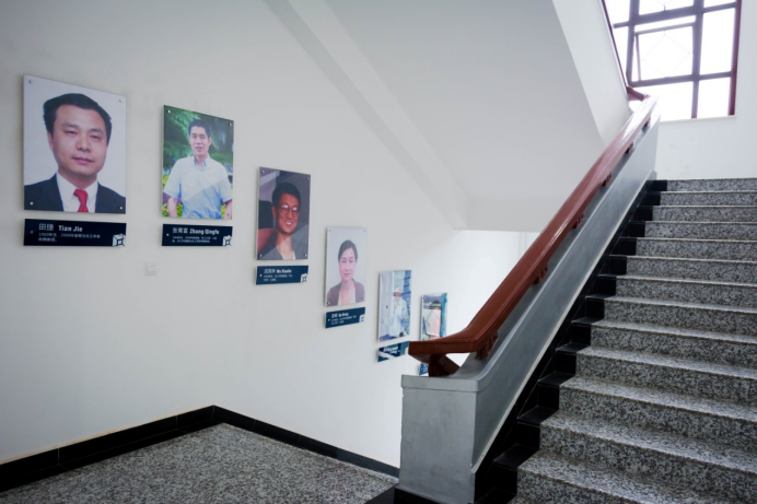 围绕着“厚德、求真、砺学、笃行”的校训,以培养出具有创新能力、实践能力以及钻研精神的学生为宗旨,兼顾环境建设、制度管理、学术交流、以身垂范等方方面面,重点实验室建立起了一整套立体的文化体系。实验室每一层楼都设置有科技感十足的文化墙,内容既涵盖人工智能学科发展又包括最新的国际科研热点事件及发展趋势:如类脑计算、深度学习、AlphaGo“人机大战”等,营造了浓厚的科研氛围。而实验室发展历程、科研队伍、科研成果等的展示则更直击人心的缔结起了师生与实验室的情感纽带,近五年间,实验室在人工智能领域崭获了三项国家自然科学奖,焦李成、高新波、公茂果教授连续三年入选计算机领域高被引学者榜单,形成了人工智能领域的我校特色!实验室卓越的科研成果让所有成员都倍感荣幸,强化了师生们的集体荣誉感和主人翁精神;从2楼拾级而上,是一面面教授墙,实验室教授们的风采在这里时时感召着大家,他们在人工智能领域中的学术经历也凝结着实验室的成长,看到他们,仿佛也看到了实验室一路走来夜以继日、奋发向上的历程;校友墙则铭刻了实验室学生们的青春,每一位从实验室毕业的学子都能在上面找到自己的名字,青青子衿,不悔求学时光;孙其功、杨少毅等杰出学生的事迹,“玲珑八面”、“鲁班七号”等由实验室学子组成的队伍在国内外各项人工智能竞赛中勇夺桂冠的消息则为同学们带来了榜样的力量,振奋着实验室学子们努力拼搏,后来居上。制度管理方面,重点实验室执行严格统一的安全与卫生规定,保证师生们能安全、有序的进行科研工作;在此基础上,各个实验室又能自由地根据自身用途和特点“量身定制”各自的管理方法,使得整个实验室严肃而又活泼,整洁而又温馨,和谐而又各有千秋。