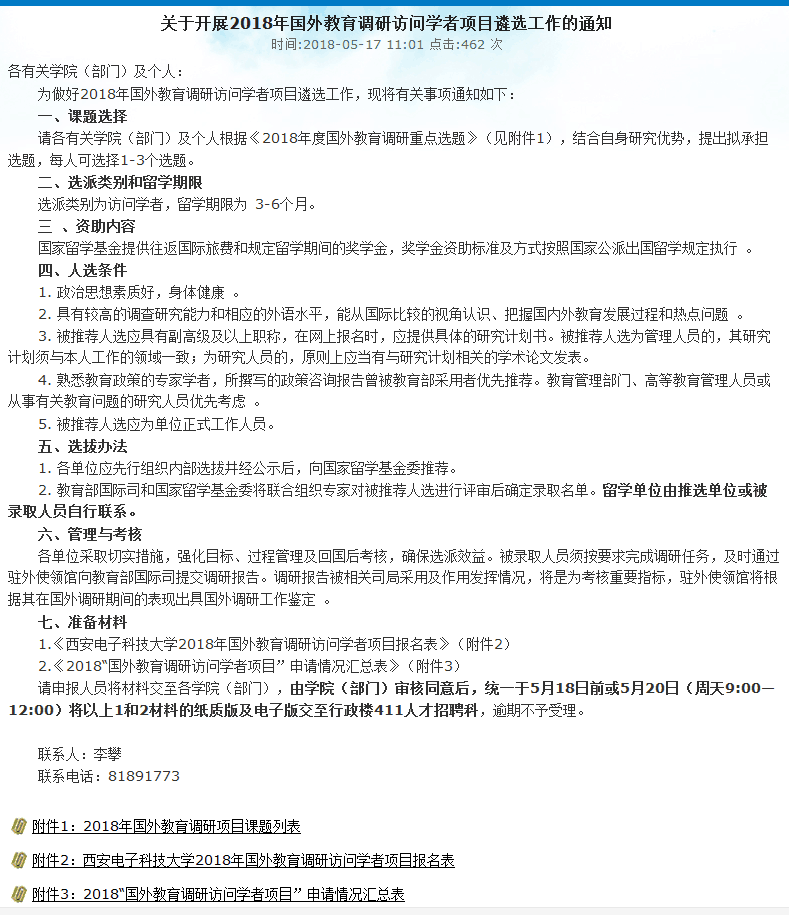 关于开展2018年国外教育调研访问学者项目遴选工作的通知