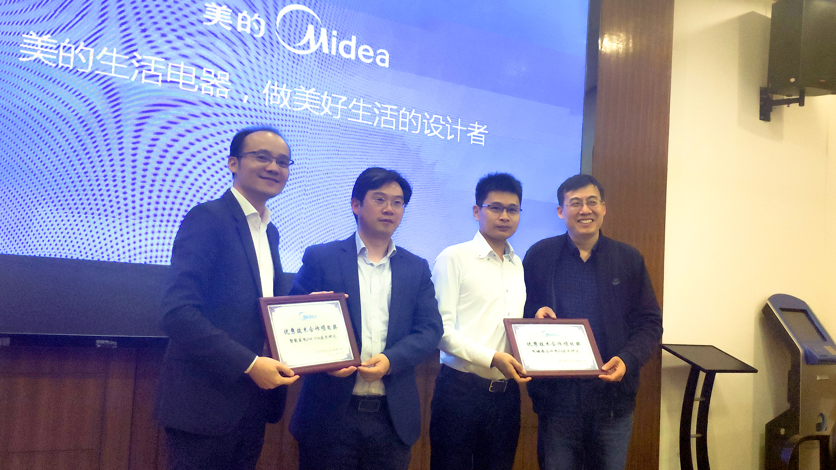 廖桂生院长和陈炜杰院长分别代表双方签署了联合实验室合作协议。李建东副校长与黄兵副总经理代表双方为联合实验室揭牌,宣布了西安电子科技大学-美的生活电器电磁联合实验室的正式成立。同时美的生活电器事业部也对此前的优秀合作项目奖进行了颁奖表彰。