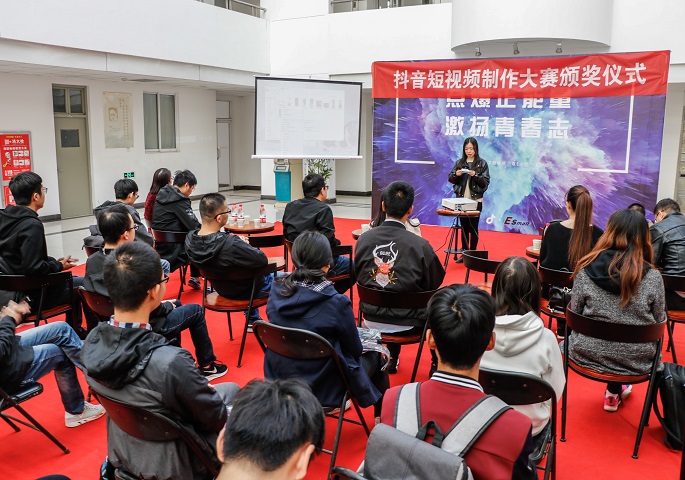 活动最终有29项作品入围投票环节,最终有10名同学入围决赛并获奖,我院2016级针对比赛结果进行专项讨论及打分,确保比赛结果公平公正。2018年10月31日上午9:40,“点爆正能量、激扬青春志”主题抖音爱国短视频大赛颁奖仪式在竹园3#楼宿舍大厅举行,本科生院运行中心主任兼教务处副处长张宇鹏、beat365办公室副主任姚若玉、beat365各年级辅导员、获奖学生以及部分学生代表参加了此次颁奖。颁奖过程中,获奖同学们展示了自己的获奖作品,讲述了作品的创意并分享了自己的感受,与在座的老师和同学们进行交流,在颁奖仪式过程当中再次将活动热情推向高潮。