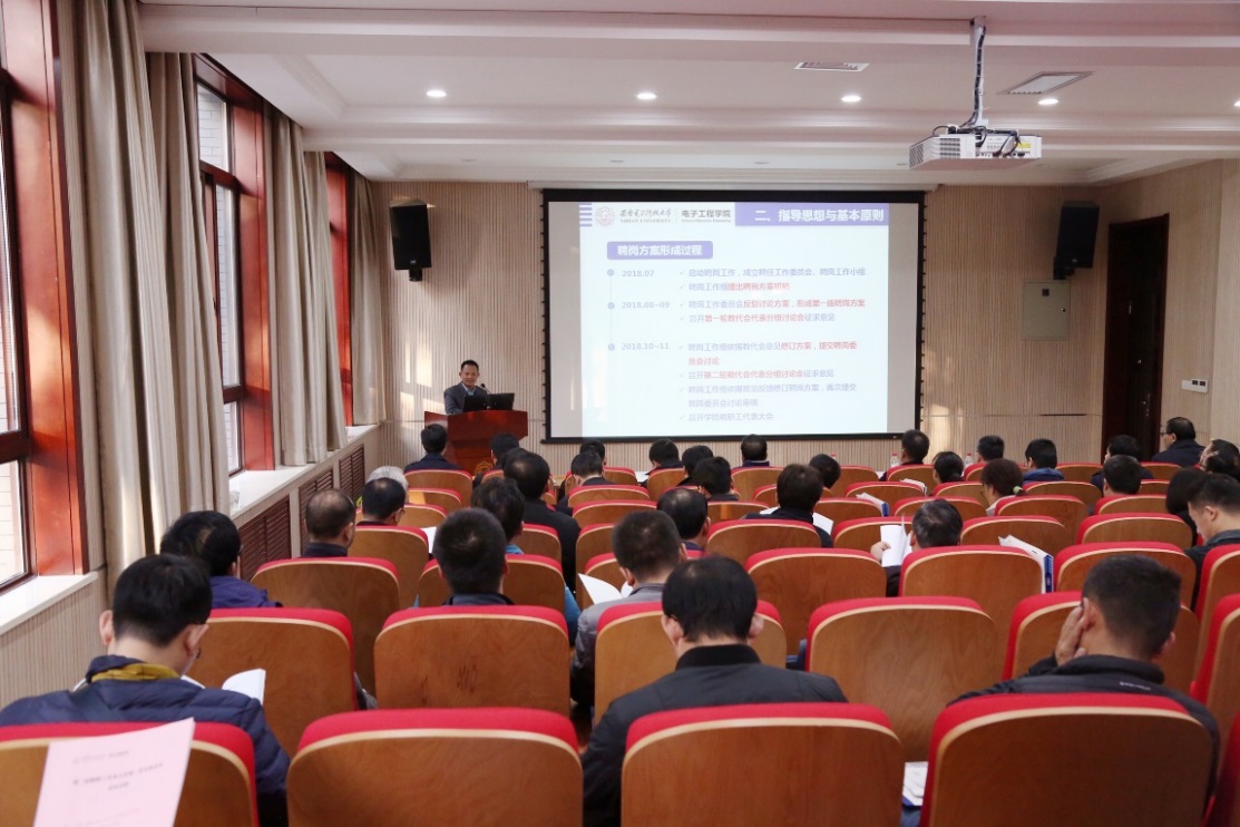 (通讯员 贠琳红)11月21日下午,beat365在北校区主楼二区201会议室召开了第二届第二次教职工代表大会,表决通过了学院第二轮教师岗位聘任实施方案,开启了学院建设一流的新征程。55名教师代表出席会议,我校本科生院计划中心主任兼教务处副处长苏涛、科研院前沿交叉研究院副院长邢孟道、人事处副处长黄军荣、计划财务处科研财务科科长张琳彦以及学院系所负责人和教职工党支部书记等13人列席大会,会议由学院党委书记蔡固顺主持。